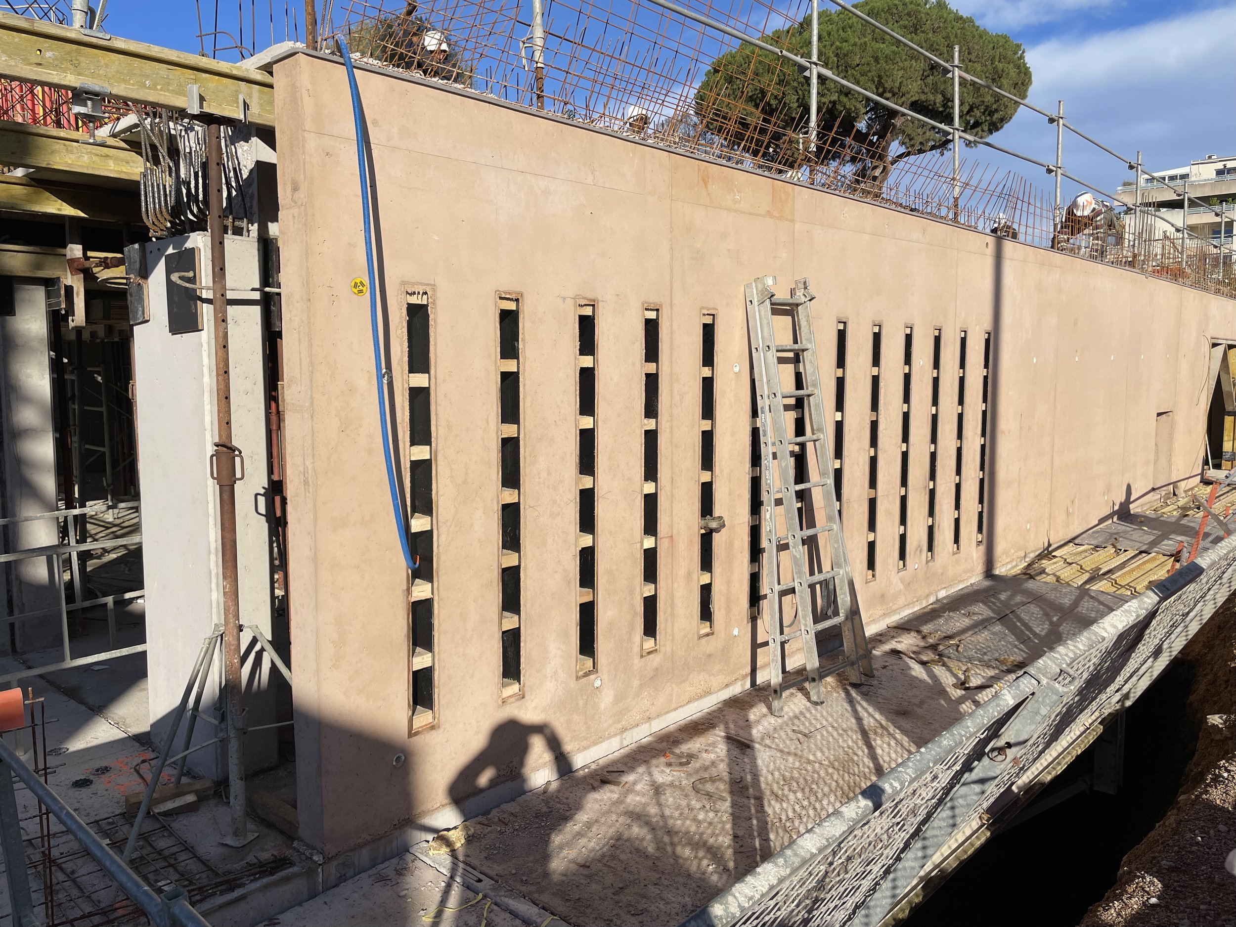Les résidences U Candelu & Luminelu sont situées sur les hauteurs du chemin de Candia, face au golfe maritime d’Ajaccio. Profitant de la déclivité du site, le bâtiment se compose de trois volumes distincts : le socle et les deux résidences sociales. Constitué de deux niveaux de stationnement, le socle forme une masse en béton architectonique desservant les accès au parking et les halls d’entrée des résidences.